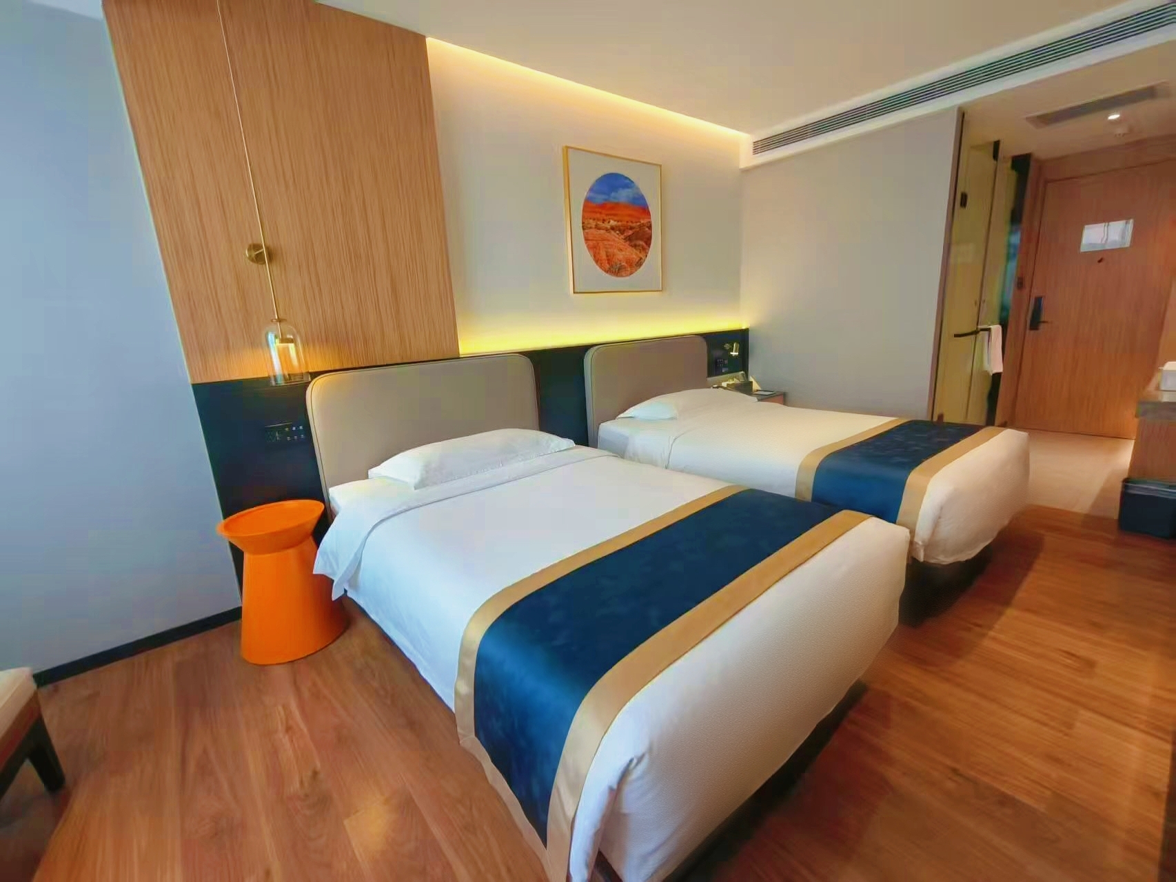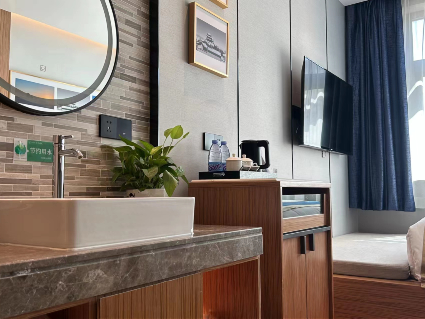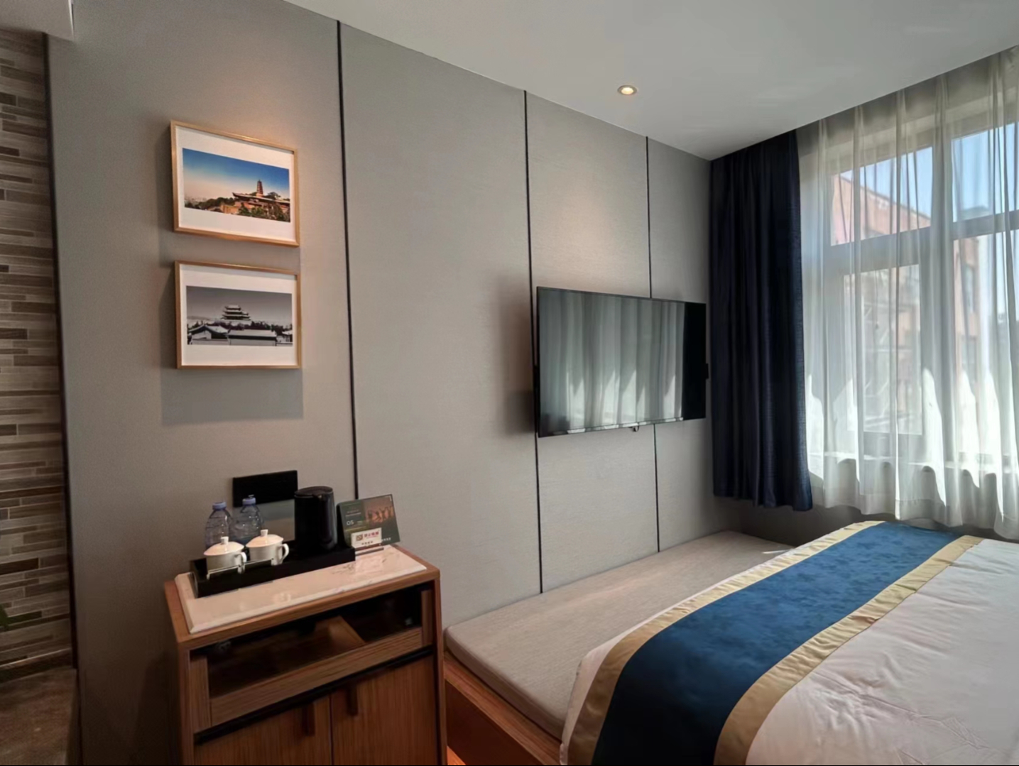 楼层:2-7F 层 设施:电视、中央空调、电热水壶、24小时热水、独立淋浴区、遮光窗帘、无线wif