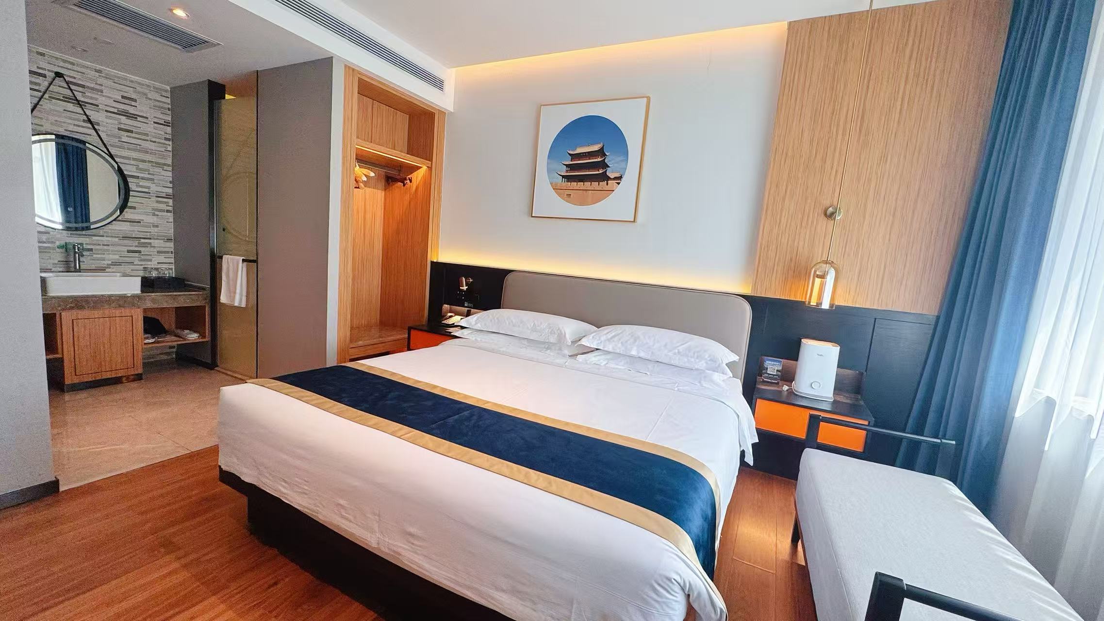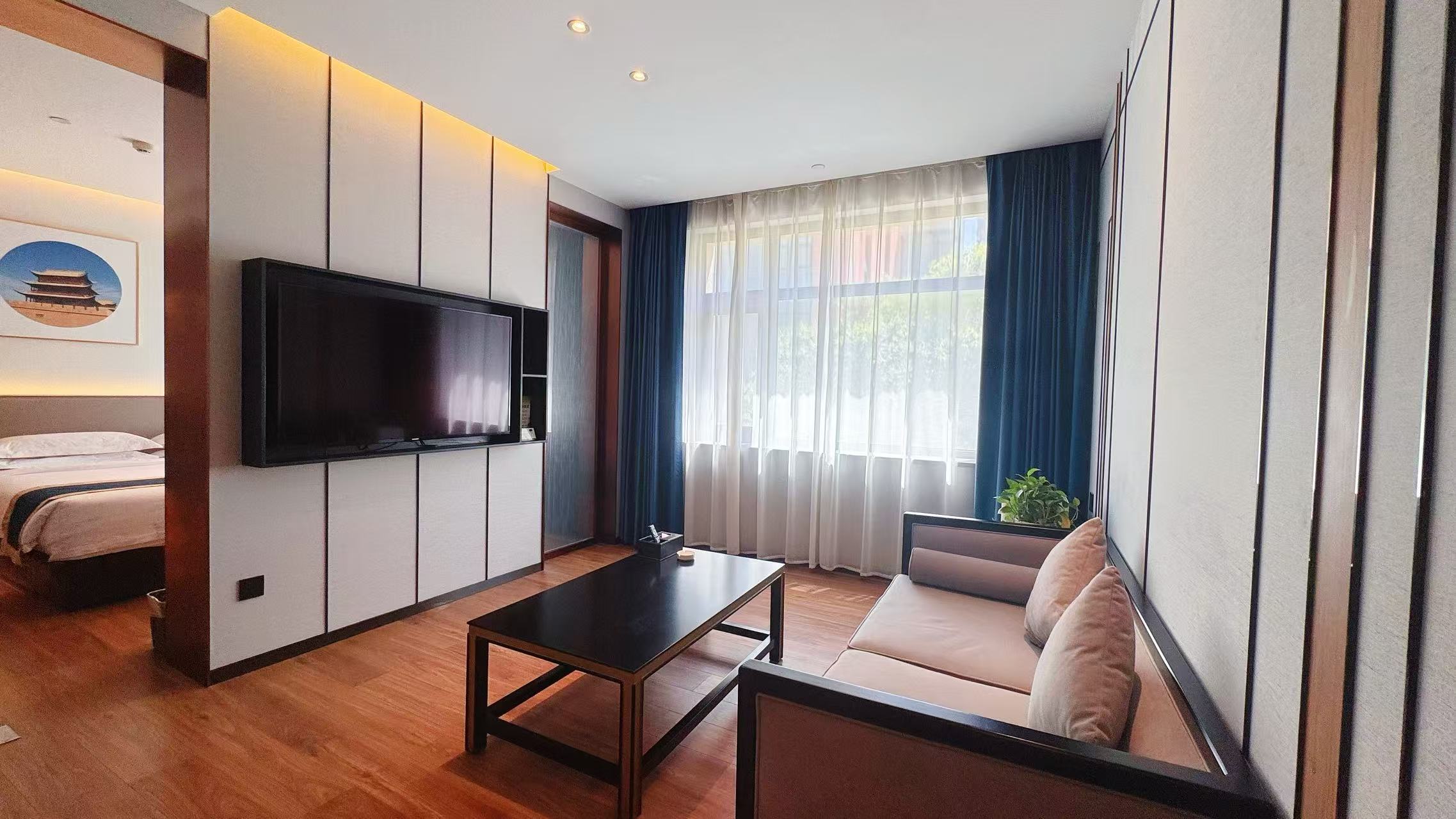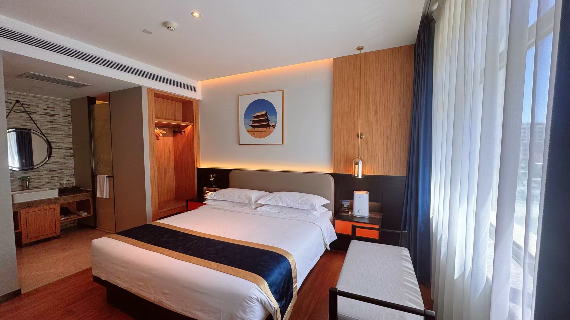 楼层:2-7F 层 设施:电视、中央空调、电热水壶、24小时热水、独立淋浴区、遮光窗帘、无线wif