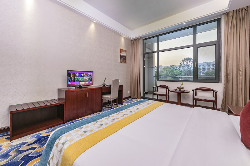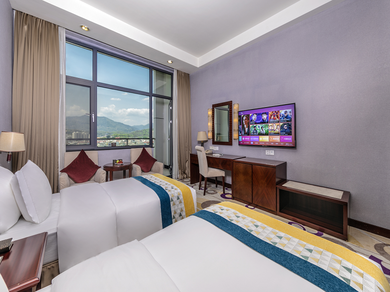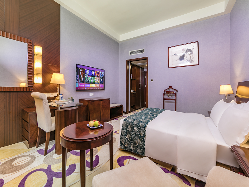 楼层:9F 层 设施:央空调 电热水壶 化妆镜 保险箱 遮光窗帘 24小时热水 独立淋浴区 浴缸 吹风机 国内长途电话 国际长途电话 液晶电视