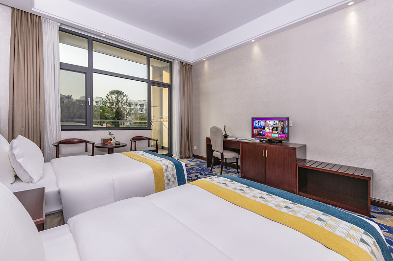 楼层:2-3层 层 设施:中央空调 电热水壶 化妆镜 保险箱 遮光窗帘 24小时热水 独立淋浴区 浴缸 吹风机 国内长途电话 国际长途电话 液晶电视