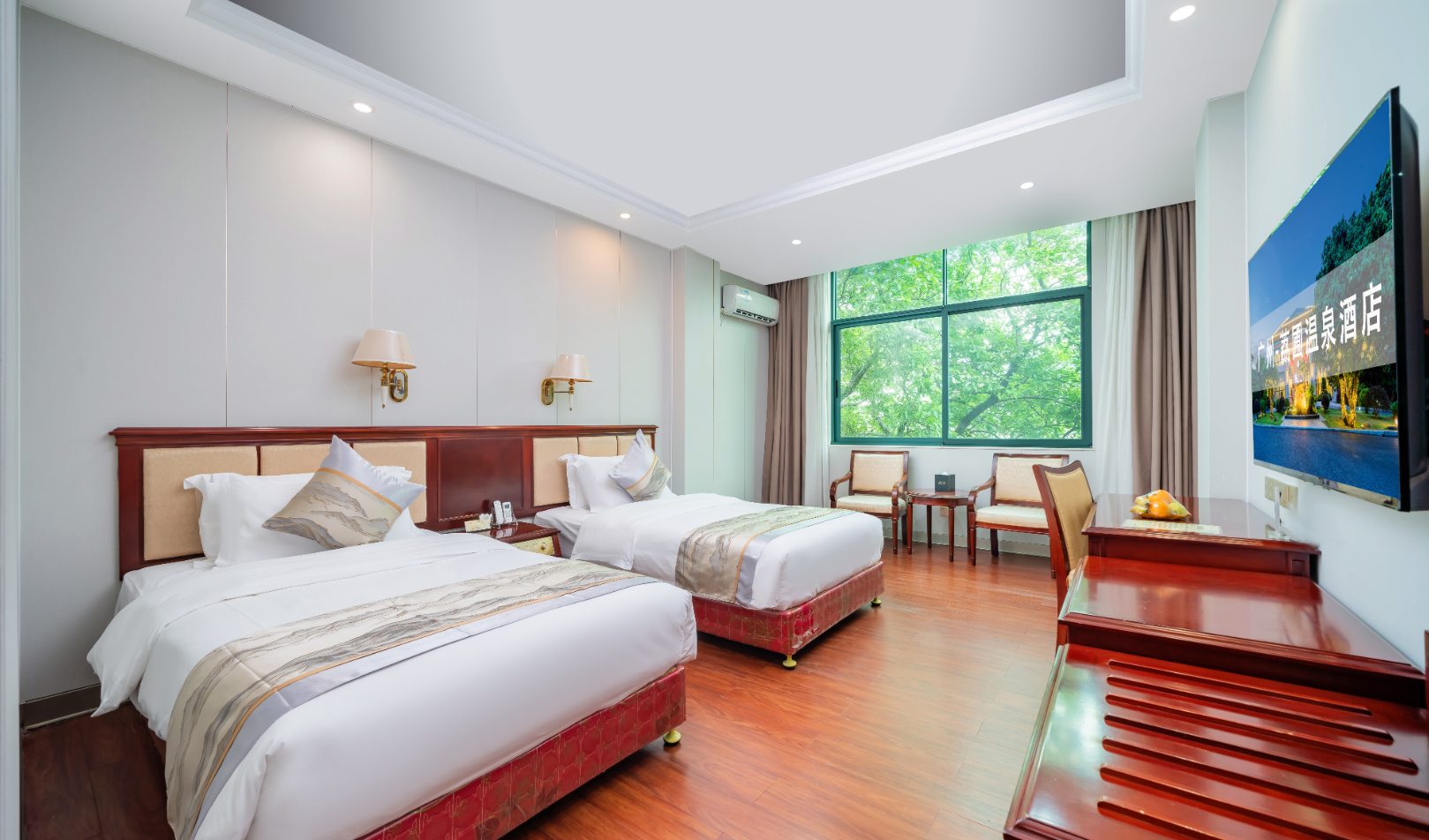 24小时预订热线广州荔圃温泉酒店始建于1958年,占地9.8万平方米,其前身是广州军区从化接待处。酒店于2018年升级改造,酒店位于名闻遐迩的广州从化温泉旅游区,华南快速、京珠高速、大广高速、广河高速直达,约1.2小时车程,交通十分便利,被称为广州后花园。,酒店自有“世界珍稀温泉”水井5口,温泉水水温可达71℃左右,含有氡、小苏打、钙等10多种元素,酒店依山傍水、鸟语花香,空气清新,环境优雅,酒店建筑古朴独特,富于民族特色,是观光旅游、休闲度假、会议培训、沐浴温泉的优选之地。<br>酒店拥有将军别墅二、三、七、九号楼以及荔圃大楼等多栋客房,各楼均设有畔山标准双人房、豪华家庭双人房、养生私汤客房、阳台家庭泡池房、私汤豪华套房、360°河景总统套房等多种房型;酒店高档会场有7个,可容纳20-250人等;餐厅位于荔枝岛上荔枝王食府,荔枝王食府可同时容纳310人用餐,亲临流溪河畔,环境优雅,可举办各种宴会、会议餐、团体与散客订餐;酒店有荔圃水苑露天公共温泉,不同类型温泉池15个,室内羽毛球、乒乓球、台球室、健身房,以及登许世友将军猎道、骑行绿道等休闲娱乐项目。